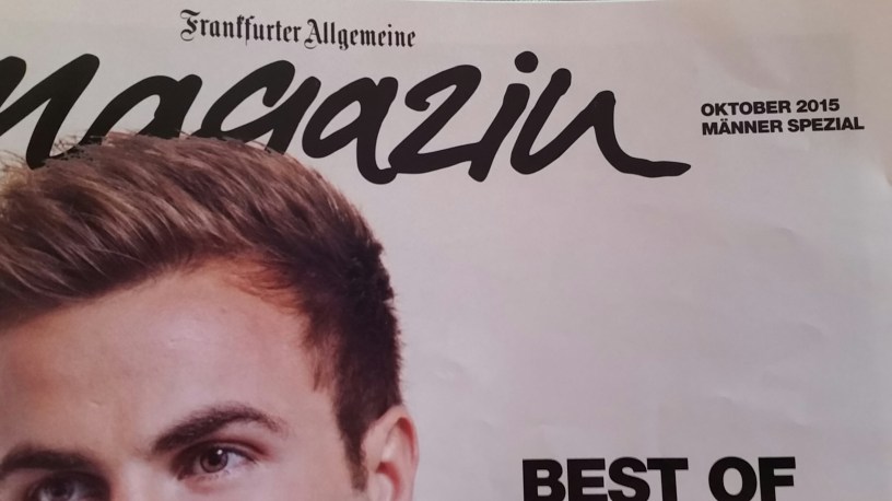 Übrigens findet meine Mitbewohnerin es befremdlich, dass die „F.A.Z.“ ausgerechnet Mario Götze auf das Titelbild eines Männer-Spezials hievt!