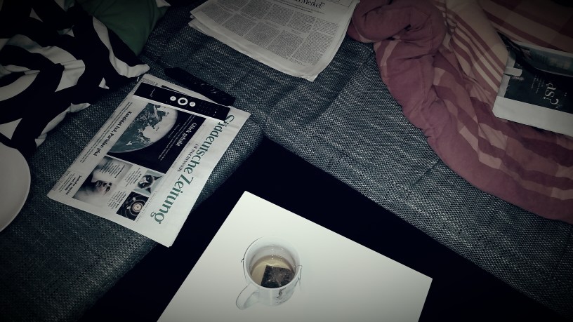 Ah, neuer Tag. Und ich beginne mit der Vortagestemperatur. Einigermaßen gut geschlafen. Ich pfeife mir Hustenlöser und ein paar andere tolle Dinge ein und beschließe, auch heute zuhause zu bleiben, da ich nach wie vor gegen Türrahmen laufe.