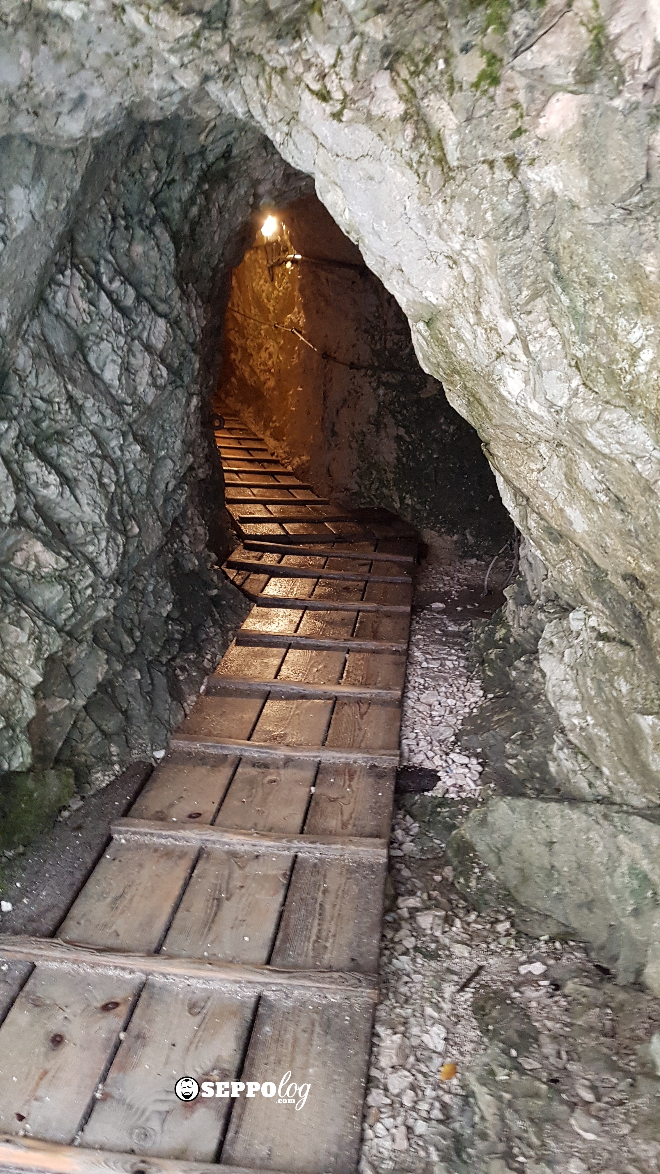 Der Aufstieg ist nervig, aber machbar, nach einer Stunde erreichen wir den Eingang der Klamm, die ich noch immer für eine Höhle halte. Doch ich werde skeptisch angesichts der Menschen, die uns aus der Höhle entgegenkommen.