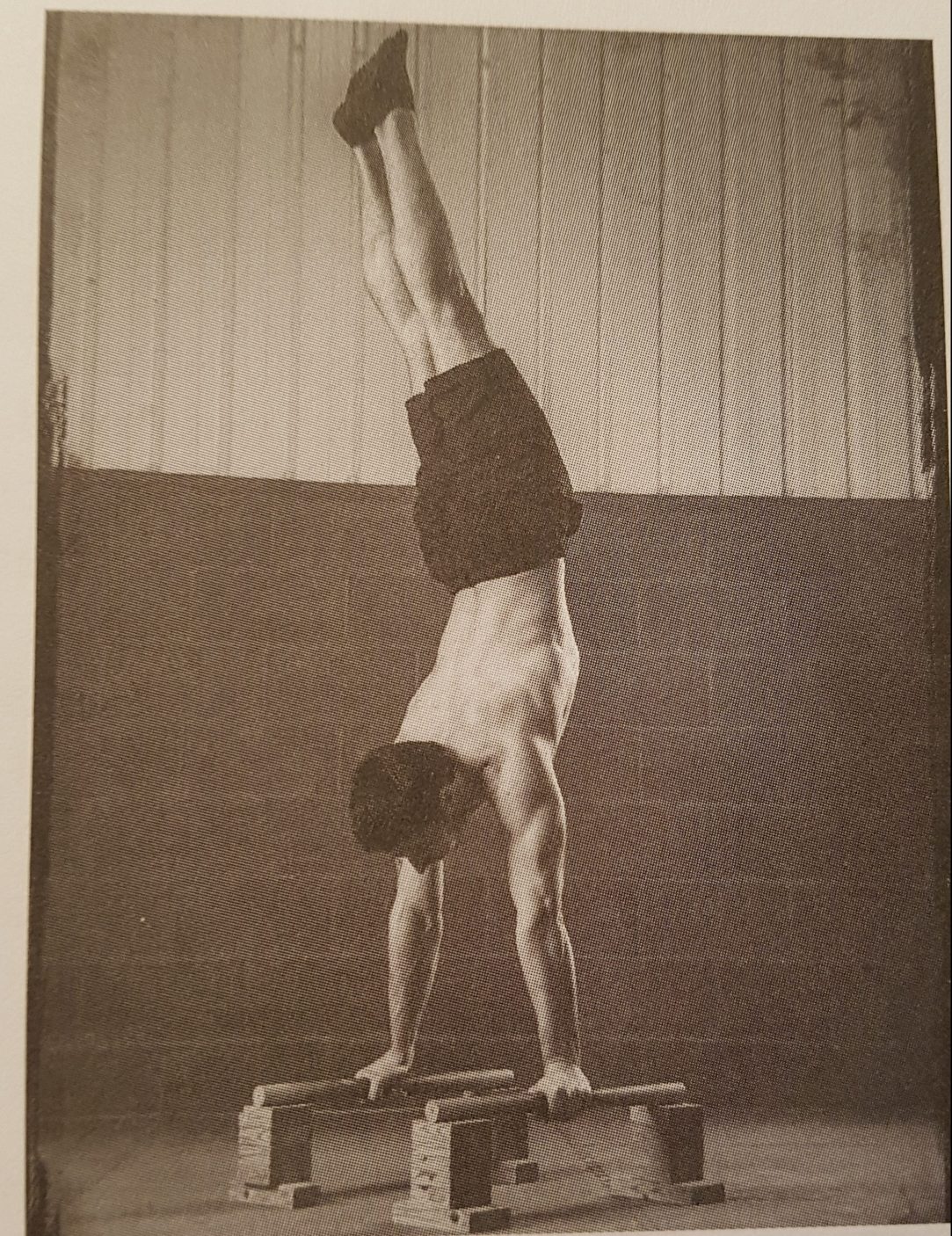 Eine ganz klassische Übung der Kalisthenie ist beispielsweise der Handstand, den dann gerne auf einem Barren – oder eben auf einem Minibarren!
