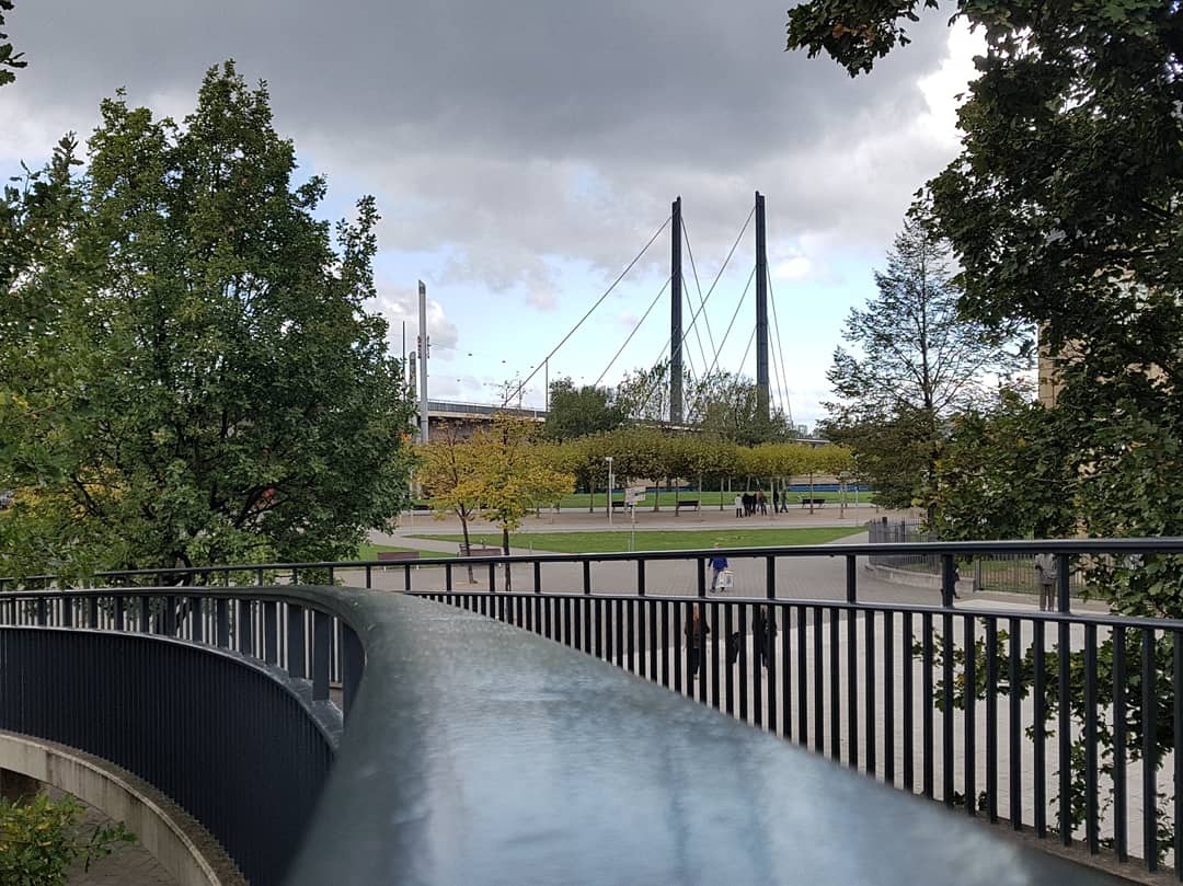 Pause. Ich erledigte diverse Telefonanrufe, die mir schwer im Magen lagen, und joggte ein allerletztes Mal durch Düsseldorf. Ich war auf eine gewisse Wehmut eingestellt, weil ich ja sonst auch keine Gelegenheit für Melancholie und/oder Nostalgie verstreichen lasse, doch beides blieb dieses Mal aus. Ich erinnere mich noch sehr gut an meinen letzten Lauf durch Münster im Mai 2008, kurz bevor ich durch eine Unachtsamkeit nach Düsseldorf zog. Damals war ich nicht nur wehmütig, sondern wirklich wenig erfreut über den Weggang aus Münster. Damals brach ich den Lauf im Grunde nach 20 Minuten ab. Gestern jedoch konnte ich den Lauf über die Düsseldorfer Rheinbrücken genießen: